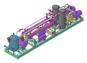 Custom-built compressor refrigeration skid for low temperature application.