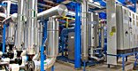 Complete industrial screw ammonia refrigeration plant for process cooling. System operates under control of centralized automation system based on industrial PLC (Siemens).